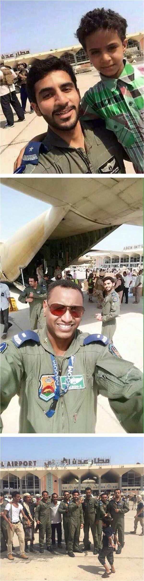احتفى ضباط القوات الجوية السعودية باللحظات الأولى من وصولهم مطار عدن الدولي بجنوب اليمن بعدد من صور “السيلفي” لأنفسهم على أرض المطار وبالتقاط الصور لهم مع المواطنين اليمنيين. جاء ذلك عقب هبوط أولى طائرات الإغاثة السعودية إلى اليمنيين امس (الأربعاء) من مركز الملك سلمان للإغاثة والأعمال الإنسانية، عقب تشغيل المطار، والتأكيد على استقبال المطار خلال الأيام المقبلة جسرا جويا للإغاثة. وأظهرت الصور تجاوبا كبيرا من قبل المواطنين اليمنيين مع وصول الطيارين السعوديين والحرص على التصوير معهم في احتفاء واضح بهم.