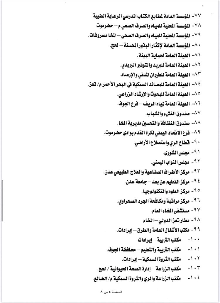 رفعت الهيئة الوطنية العليا لمكافحة الفساد بأسماء أكثر من ٢٠٠ جهة حكومية لا تورد مواردها إلى خزينة الدولة بالبنك المركزي اليمني والبنوك والجهات آلتي تورد إليها وطالبت النائب العام باتخاذ الإجراءات تجاهها.