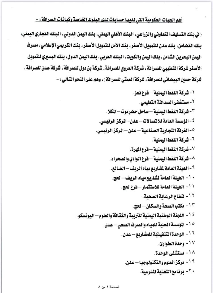 هيئة مكافحة الفساد تكشف أسماء أكثر من ٢٠٠ جهة حكومية لا تورد مواردها للبنك المركزي (وثائق)