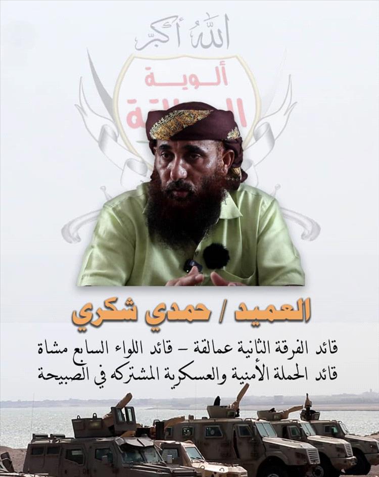 خط القائد والمناضل المقاوم العميد حمدي شكري أول مؤسس للمقاومة الجنوبية في الصبيحة ولحج ، وقائد الفرقة الثاني عمالقة واللواء السابع مشاة، قائد الحملة الأمنية والعسكرية المشتركة في الصبيحة، قصة نضال يمنية عروبية متفردة، ضد المليشيات الحوثية على امتداد خريطة المحافظات الجنوبية والساحل الغربي، وصولاً إلى مطار الحديدة ومديريات بيحان وحريب في شبوة ومأرب .