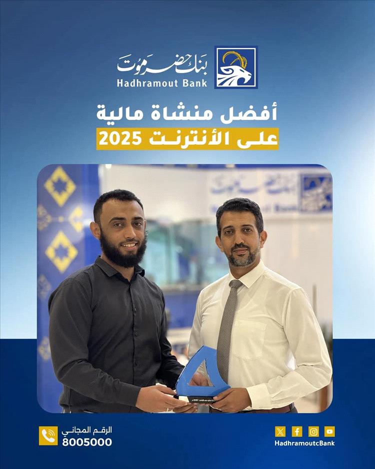 بنك حضرموت يحصد جائزة الإبداع الرقمي على مستوى اليمن ...