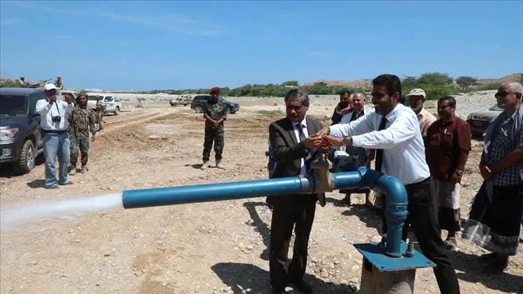 أما ملف المياه فقد نال هو الآخر نصيباً وافراً من الاهتمام؛ فتم تنفيذ مشروع حقل آبار فلك، ودمج مشروع الخط الناقل لمياه فوة، وتأهيل الخط الناقل من حقل ثلة بالمكلا، وتنفيذ وتجهيز مشروع مياه الغليلة بالمكلا، ومشروع الخط الناقل لخزان الدكداك بالشحر، إلى جانب تنفيذ عدد من مشاريع تحويل الآبار إلى الطاقة الشمسية في مناطق مثل الشحر وغيل باوزير، إضافة إلى حفر عشرات الآبار في المكلا والشحر وغيل باوزير، وإنشاء منظومات شمسية لآبار في مناطق صحراوية كزمخ ومنوخ.