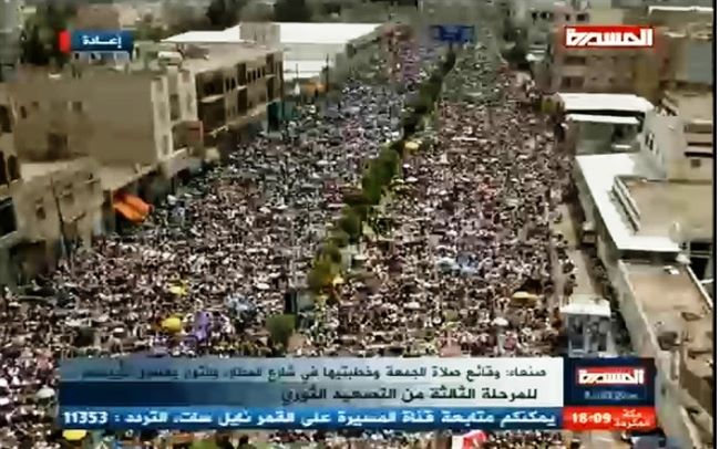 وجاء اختيار الصارمي لالقاء خطبة جمعة اليوم امام عشرات الالاف من المحتشدين بجمعة شارع المطار بصنعاء ضمن الخطوات الأولى لبدء المرحلة الثالثة من التصعيد الثوري لجماعة الحوثيين،لاسقاط الحكومة اليمنية وجرعة المشتقات النفطية والتي قال زعيمها أنها ستكون سلمية بكرامة وأكثر ايلاما وازعاجا للحكومة اليمنية، في وقت تتزايد فيه الاتهامات للرئيس اليمني السابق علي عبدالله صالح بالتنسيق مع الحوثيين والدفع بجموع المؤتمر للمشاركة في اعتصامات الجماعة المرابطة بمحيط ومداخل العاصمة اليمنية صنعاء، وفي وقت لم ينفي يفيه حزبه بطريقة رسمية تلك التهم التي أكدها القيادي المؤتمري البارز أحمد الميسري محافظة أبين الأسبق في حوار متلفز مع قناة المسيرة التابعة للحوثيين،وقال أنه تحالف جاء من أجل اسقاط صالح لمن ثاروا ضده عام 2011. وفق تأكيده.